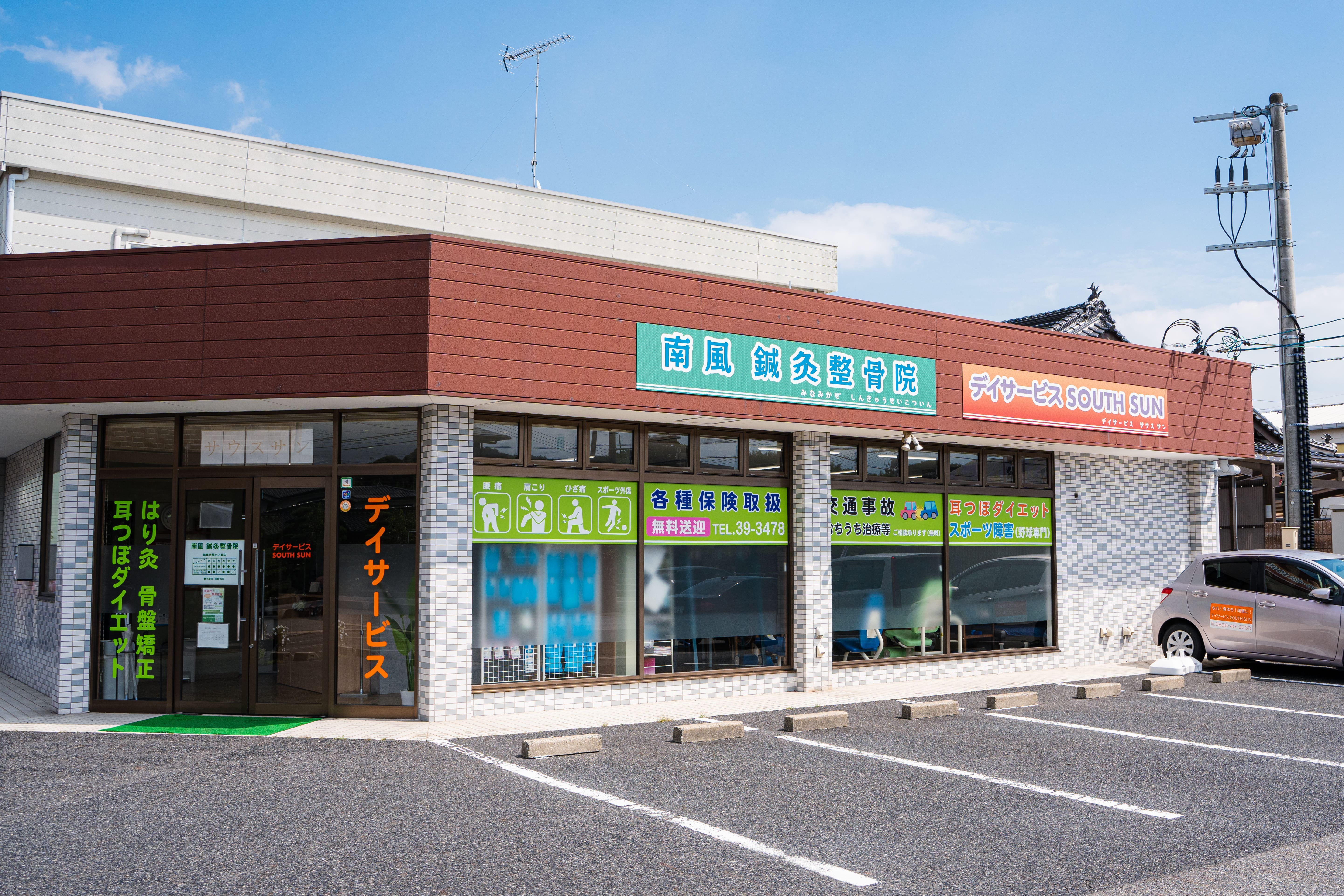 デイルームの横に鍼灸整骨院を一体として運営しております。病院やデイサービスでの機能訓練を経験したスタッフが常駐し、リハビリはもちろん、身体の痛みやしびれにこだわった治療院ですので合わせて相談・自宅での運動法なども指導いたします。介護負担などで心身にお悩みのある家族様もぜひご相談ください!